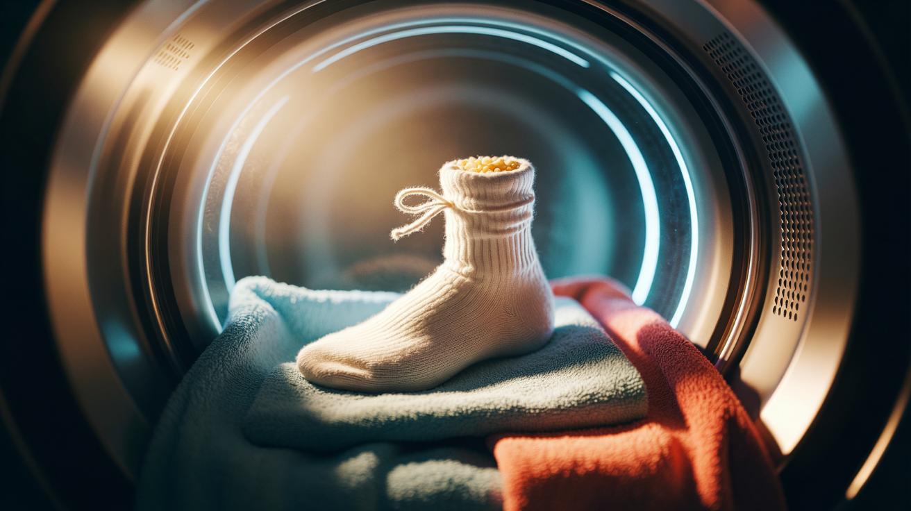 - 🛠️ Step-by-step: fill a tight cotton sock with 200–250 g uncooked white rice, knot securely, add to an almost-dry load on low/medium heat for 2–3 minutes.